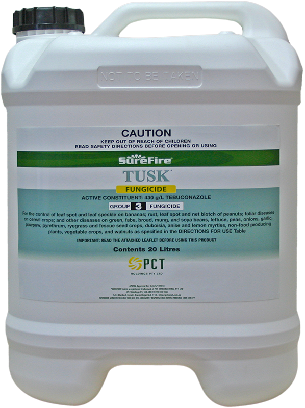 For the control of leaf spot and leaf speckle on bananas; rust, leaf spot and net blotch of peanuts; foliar diseases on cereal crops; and other diseases on green, faba, broad, mung, and soya beans, lettuce, peas, onions, garlic, pawpaw, pyrethrum, ryegrass and fescue seed crops, duboisia, anise and lemon myrtles, non-food producing plants, vegetable crops, and walnuts as specified in the DIRECTIONS FOR USE Table